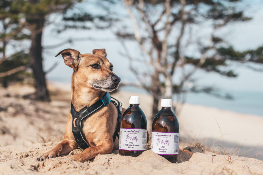 Olej Omega-3 lub olej z Alg Lunderland – podstawa przy świądzie u psa i suchej skórze. Działa przeciwzapalnie i wspiera barierę skórną.