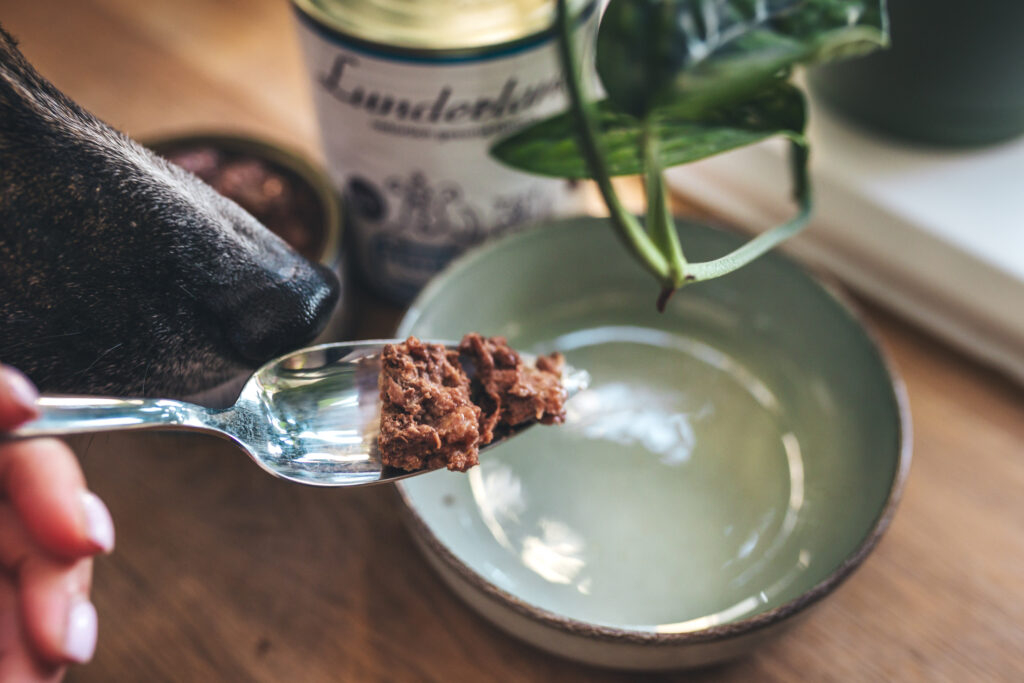 U mnie często sprawdza się jeszcze prostsze rozwiązanie – puszka monoproteinowa z jednym źródłem białka. W momentach kryzysowych bardzo dobrze tolerowane są np. puszki Lunderland z indykiem albo koniną. Są proste składowo i nie zawierają zbędnych dodatków, więc żołądek ma dużo mniej pracy.